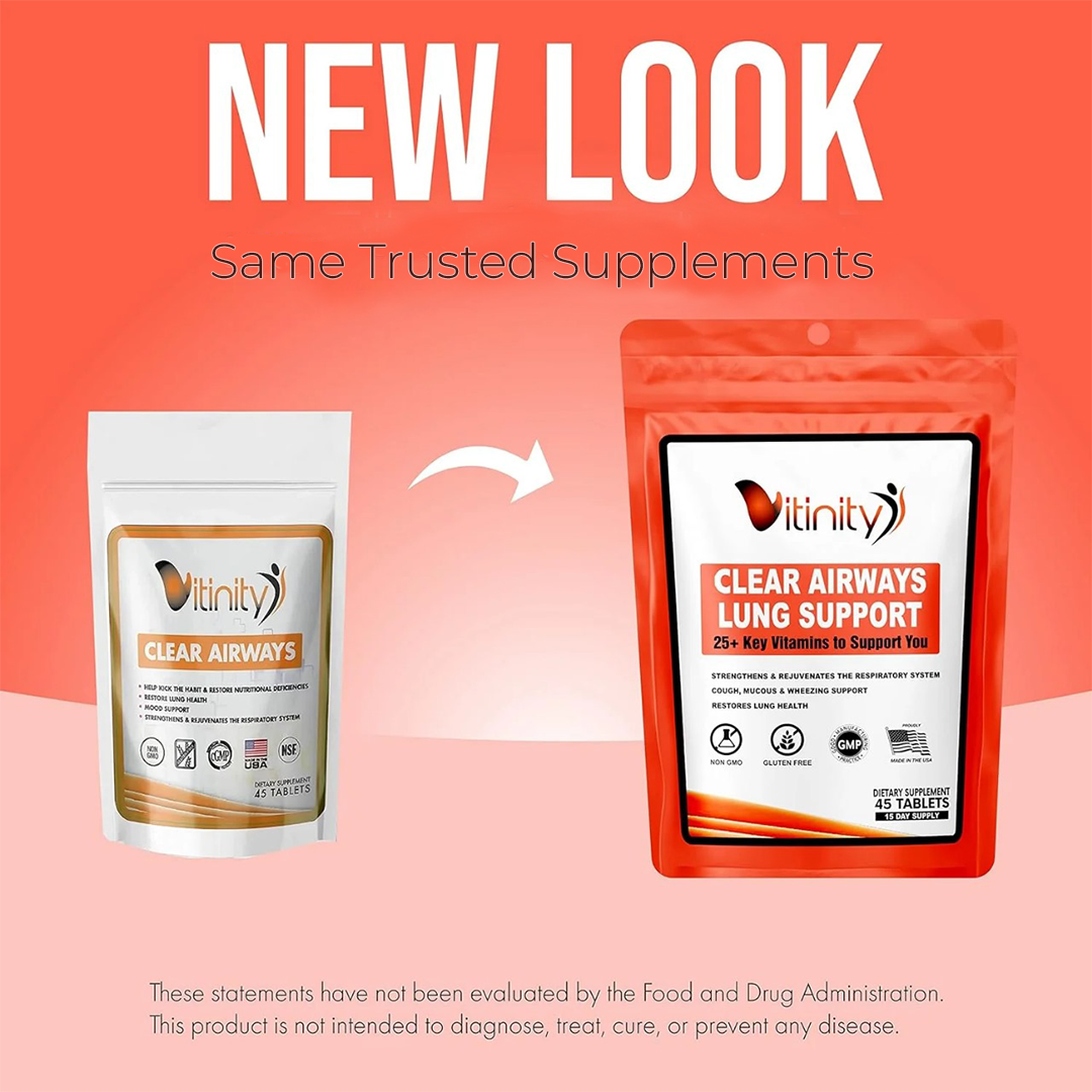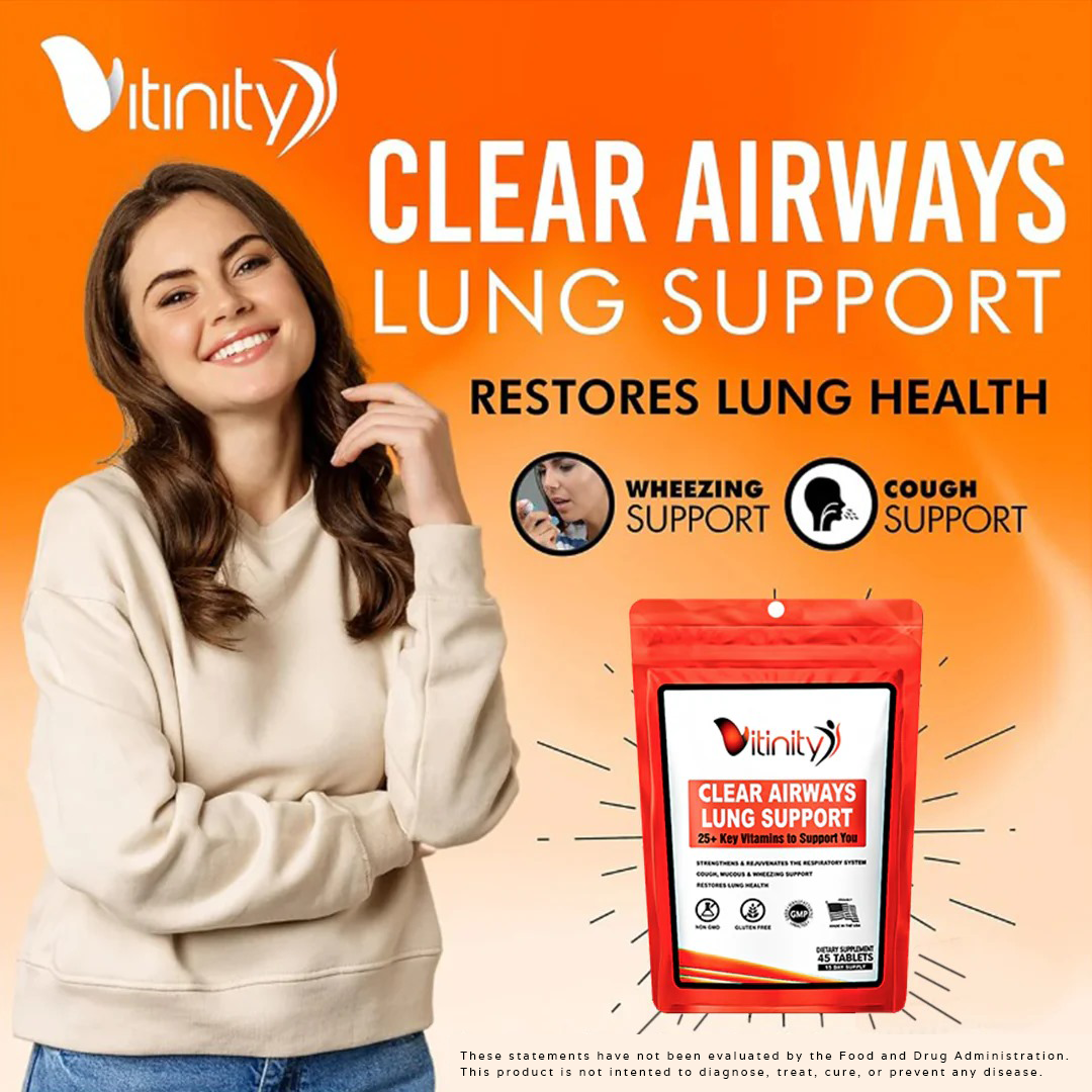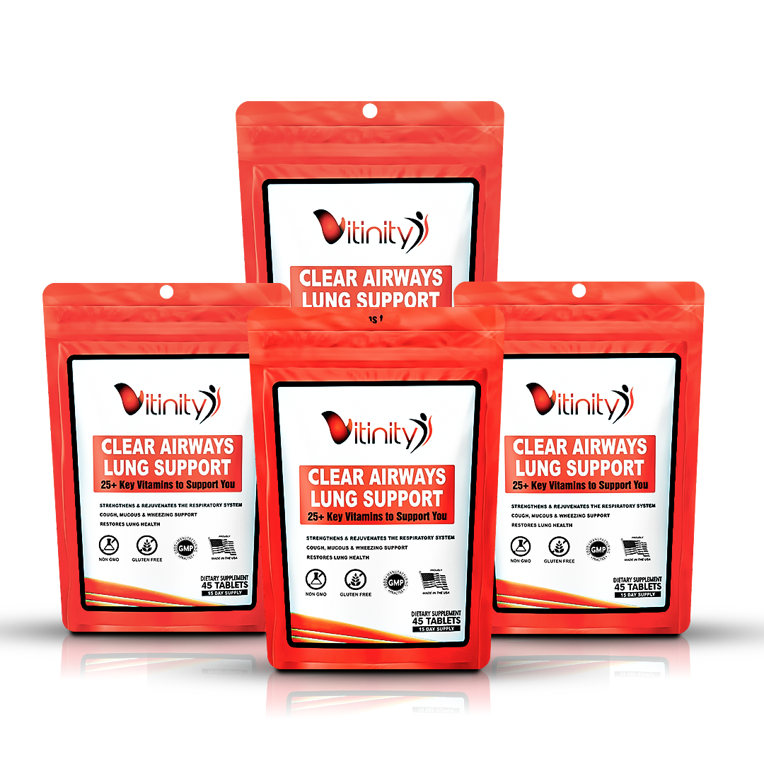Vitinity Clear Airways Lung Support & Respiratory Health Multivitamin is a supplement specifically created to provide your body the blend of vitamins, minerals and nutrients needed to support the health of your lungs.